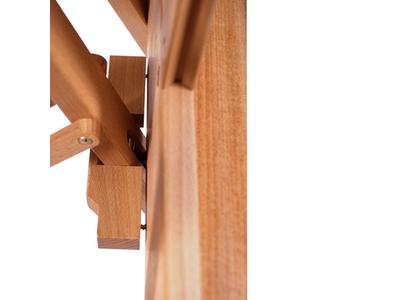 Driepootezel van het Italiaanse merk Mabef. De ezel is gemaakt van geolied en vlekbestendig beukenhout, wat hem zeer stevig maakt en waardoor hij lang meegaat. Zowel de hoogte als de werkhoek zijn verstelbaar, waardoor je de ezel op je eigen wensen kan aanpassen. De hoogte kan aangepast door middel van de pin in het midden. De werkhoek pas je aan via de centrale mast, die naar voren gezet kan worden.