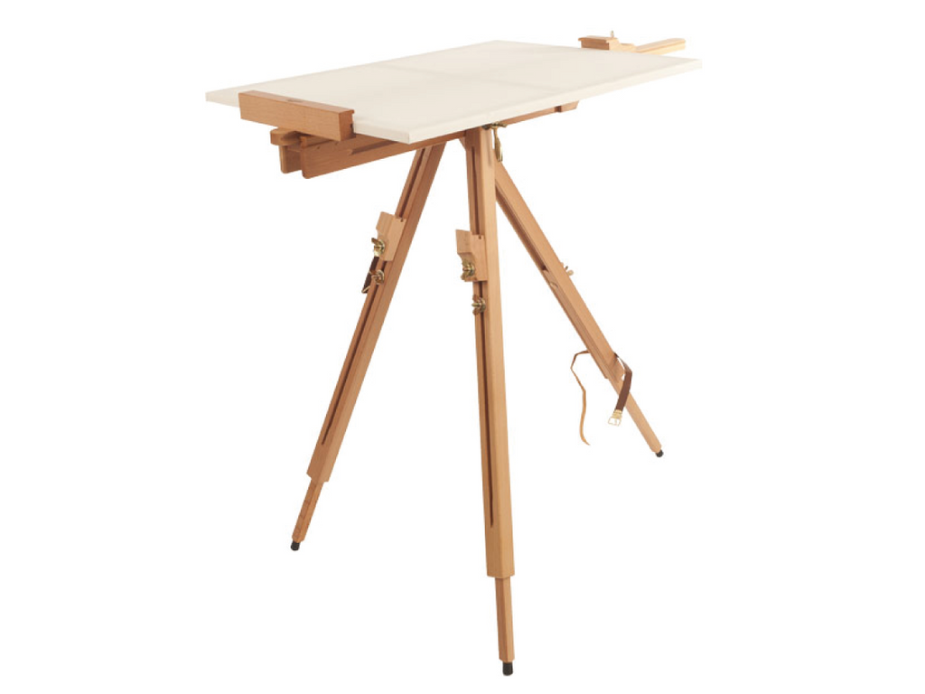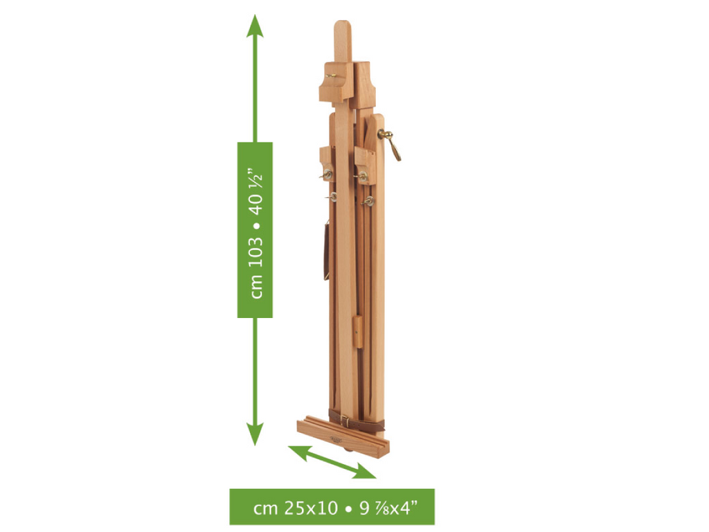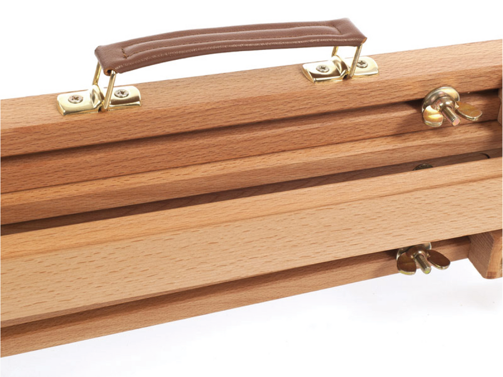 Stevige veldezel van het Italiaanse merk Mabef. Gemaakt van geolied en vlekbestendig beukenhout, wat de ezel heel stevig maakt. Hij gaat hierdoor lang mee. De ezel is licht in gewicht en heeft een leren handgreep waardoor hij makkelijk te dragen is. Hij kan verder compact ingeklapt worden, waardoor opbergen ook geen probleem is.