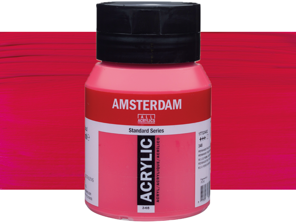 Amsterdam Standaard Series Acrylverf 500 ml heeft alles wat een kunstenaar nodig heeft om te schilderen. Het is een kwalitatief fraaie acrylverf en heeft een groot assortiment kleuren. • korte droogtijd (binnen een half uur droog) • hoge graad van lichtechtheid • duurzame verffilm (bindmiddel bestaat uit 100% acrylaathars) • water verdunbaar • geurloos • alkalibestendig (geschikt voor muurschilderingen) • verkrijgbaar in vele kleuren