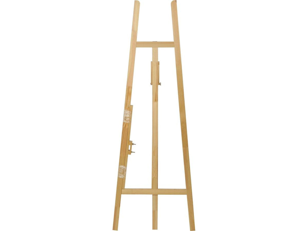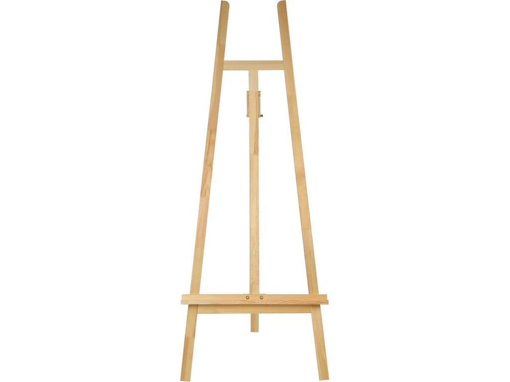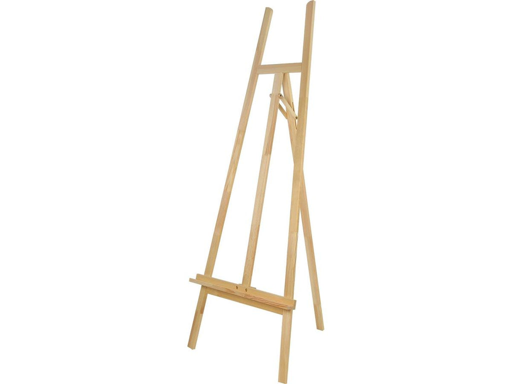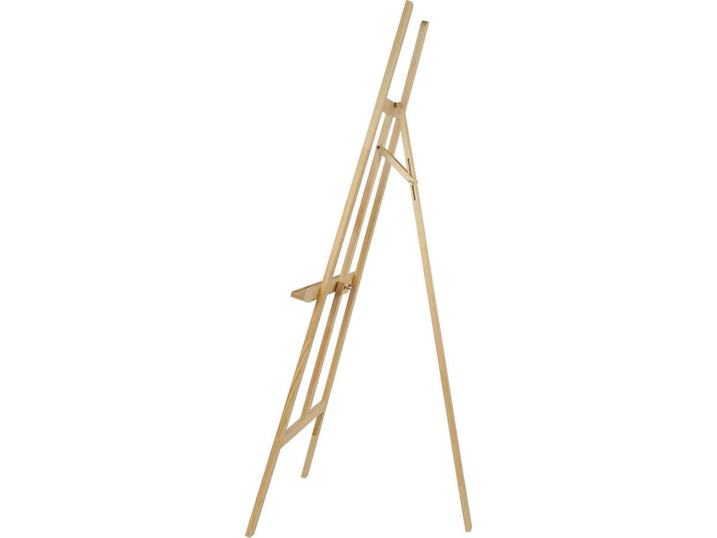 Driepoot expositie ezel van blank, ongelakt vurenhout. In hoogte en hoek verstelbaar, zodat je de ezel helemaal naar eigen wens kunt afstellen. De doekdrager kan omhoog en omlaag geschoven worden, en zo kleinere, of grotere doeken dragen. De maximale doekhoogte is 130 cm.