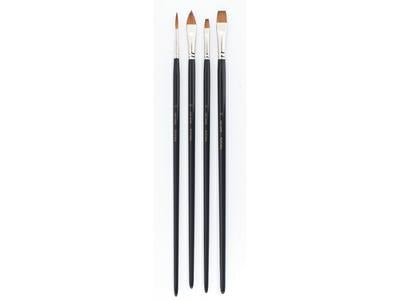 Deze set is een mooie beginnersset met kolinsky marterhaar penselen. Het bevat 1 plat penseel (nr.6), 1 plat penseel (nr.12), eenm kattentong (nr. 10) en een rond penseel (nr.12).