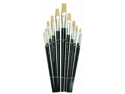 Een voordelige set met 11 middellange platte varkensharen penselen voor olie- en acrylverf.